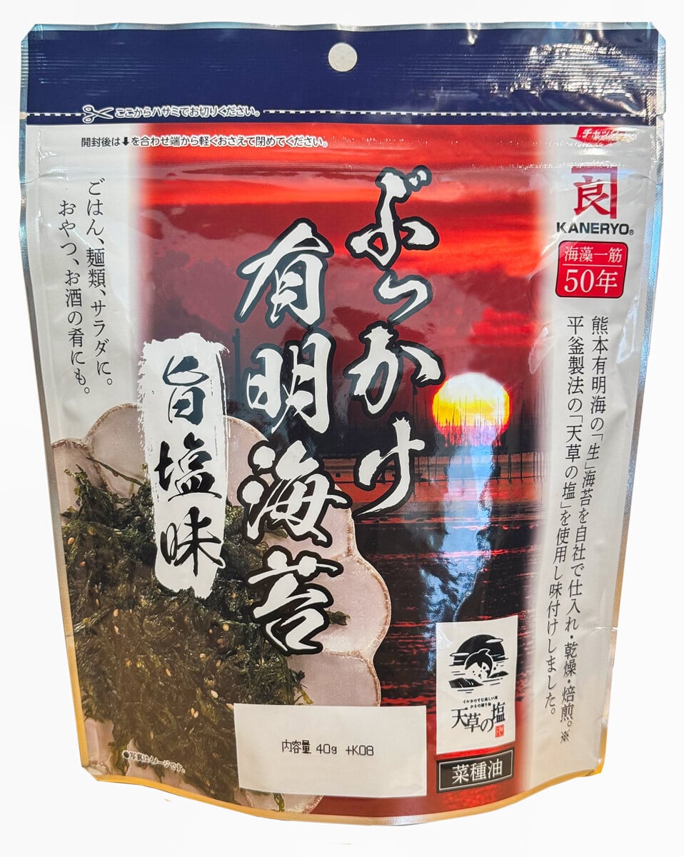 有明海の恵みを活かした「ぶっかけ海苔旨塩味」は、食卓に新しい風味をお届けする特別なふりかけです。厳選された有明海の海苔を使用し、シンプルながら深い旨みを引き立てる塩で味付けを行いました。このふりかけはご飯やおにぎりにふりかけることで、簡単に美味しい一品となります!